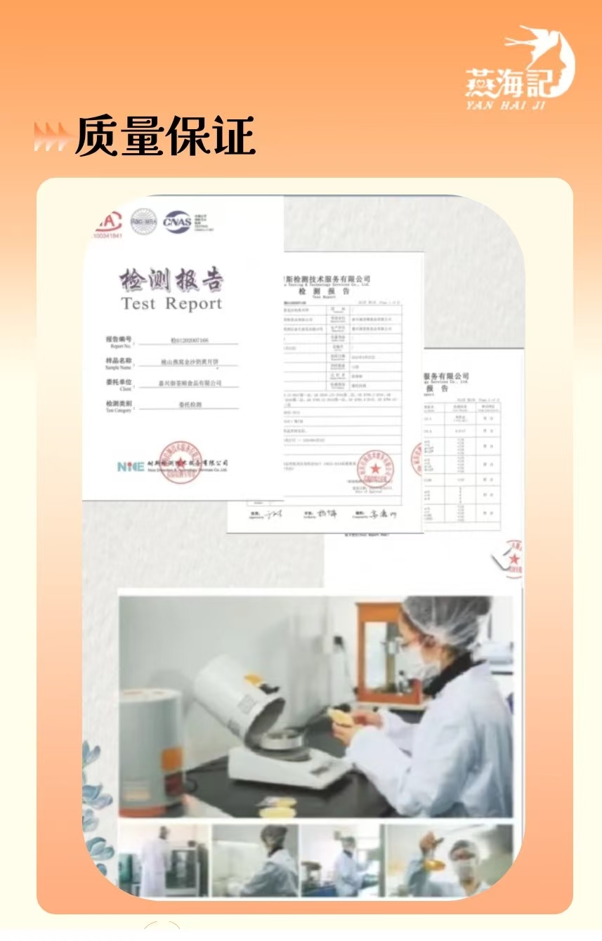 成都燕海記有限公司主营燕窝及燕窝的衍生产品等,公司产品原材料均产自印度尼西亚和马来西亚优质金丝燕燕窝,经层层精粹选盏、挑毛等科学工艺加工提炼而成。燕海記致力于高品质燕窝的研究和经营,取得许多突破性的创举,其率先推出的燕窝月饼等节日礼品深受大家的喜爱和欢迎。